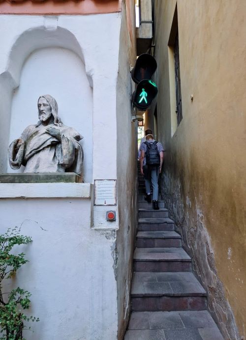 Nedaleko Karlova mostu na Malé Straně, U Lužického semináře 24, najdete nejužší pražskou uličku. V nejužším místě měří pouhých 50 centimetru a jedná se o jedinou semaforem řízenou uličku ve střední Evropě.