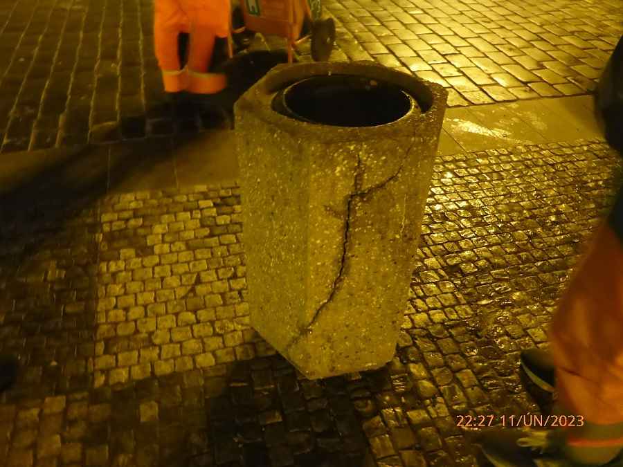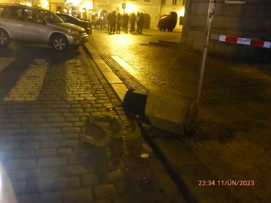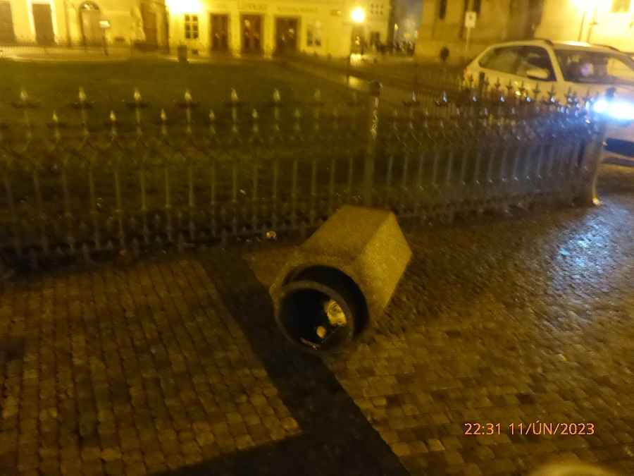 V Kaprovce a na Staromáku lidé večer potkávali povalené a rozmlácené betonové koše. Nešla tudy Godzilla, ale silně opilý mladík, který si troufl i na takové soupeře.