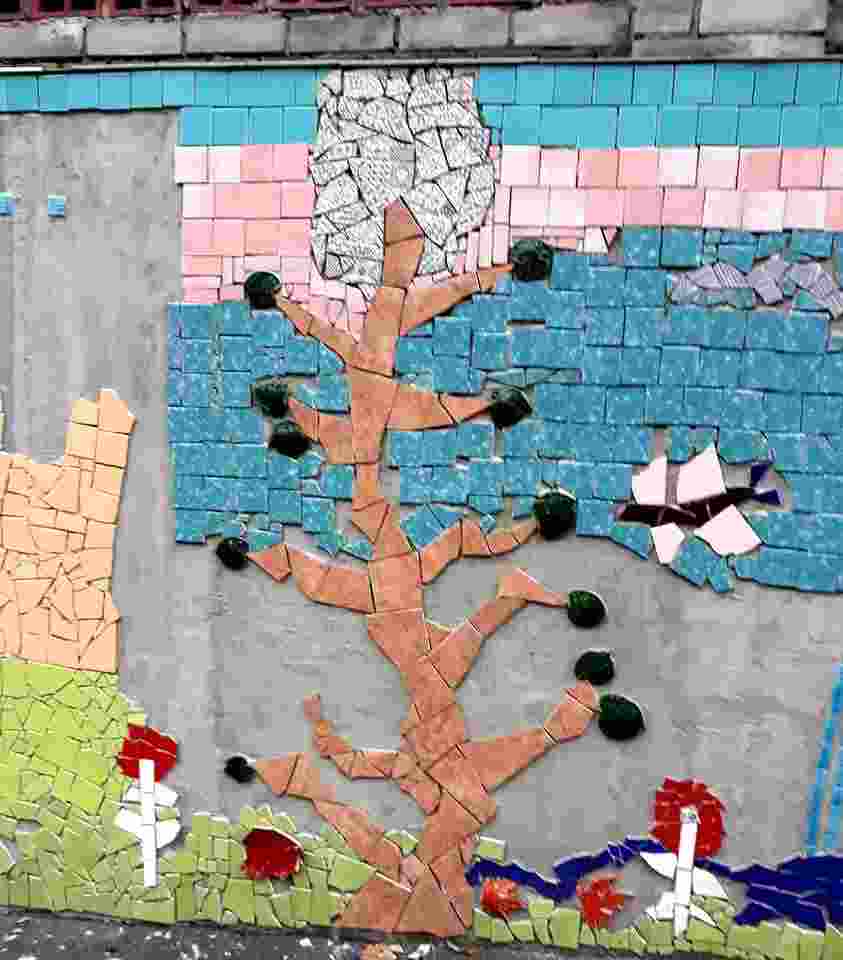 V ulici Pod Andělkou v Praze 6 na šeredné zdi někdo (neví se kdo) vytváří mozaiky ze starých kachliček. Sice…