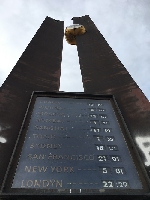 Původní dvanáct metrů vysoká a pět tun těžká dominanta veřejného prostoru u vstupu do stanice metra Florenc byla těžce zasažena korozí, tabule ukazující časy ve světových metropolích zase dlouhodobě nefungovala.