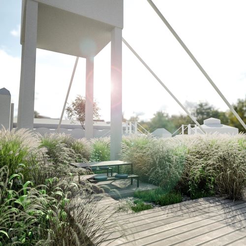 Revitalizace střech pavilonů a realizace pobytových zón bezprostředně navazuje na celkovou rekonstrukci Křižíkových pavilonů. Nově zazeleněné střechy nabídnou příjemný pobytový prostor s možností posezení a nabídkou drobných gastronomických služeb s krásnými výhledy na sousední Průmyslový palác i areál Výstaviště Praha. Osázení plochých střech vegetací přinese kromě přívětivého prostředí pro návštěvníky také přirozené ochlazení místního mikroklimatu v horkých letních měsících. Ve městě tak vznikne nová zelená oáza pro Pražany i zajímavý prostor pro oblíbené akce na pražských střechách a terasách.