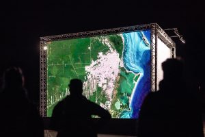 Jedná se o uměleckou instalaci RIVER-POOL od maďarského vizuálního umělce Otty Vinczeho. Pro Prahu vytvořil speciální bílou kouli se stylizovanou podobou reliéfu Bradáče, který byl na jednom ze stavebních kamenů Juditina mostu, předchůdce Karlova mostu. Symbol Bradáče autor zvolil jako připomínku síly vody a její úctyhodnosti. Reliéf umístěný pod Karlovým mostem sloužil v minulosti jako varování před záplavou a když voda vystoupala k jeho vousům, začali místní utíkat před povodní.