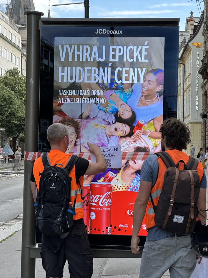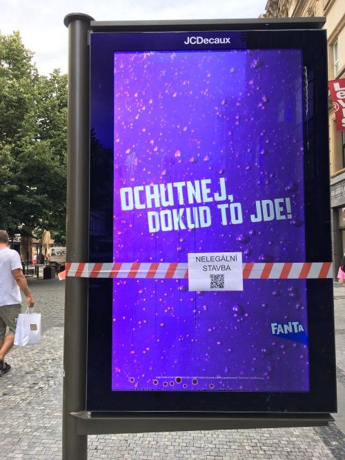 Stovky reklamních vitrín, které měly být nejpozději na konci března tohoto roku odstraněny, stále hyzdí a překážejí v ulicích Prahy. Aktivisté z iniciativy Přidej se a strhni to na tento fakt upozornili happeningem, během kterého LCD obrazovky v ulici Na Příkopech v Pražské památkové rezervaci, zapsané na seznamu světového dědictví UNESCO, opentlili výstražnou páskou a cedulí “NELEGÁLNÍ STAVBA”.