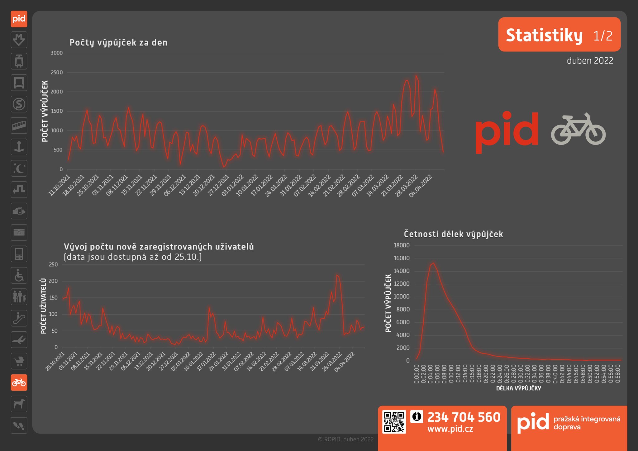 – dotovaná délka jedné výpůjčky: 15 minut pro klasické kolo a 5 minut pro elektrokolo