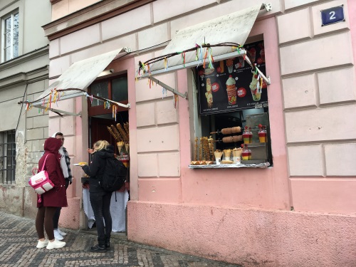 Zámecký schody zřejmě nejsou pod kamerami. Dole u Klárova si můžete dát typicky staropražskou mňamku vařenou kukuřici (je otázka času, kdy se kukuřice dostanou i dolů do centra, opravdu typicky český lívance furt jedou jen v Celetné) a nám dobře známý bramborový smažený spirálky, který se jeden čas na černo prodávaly taky u Karlových lázní.