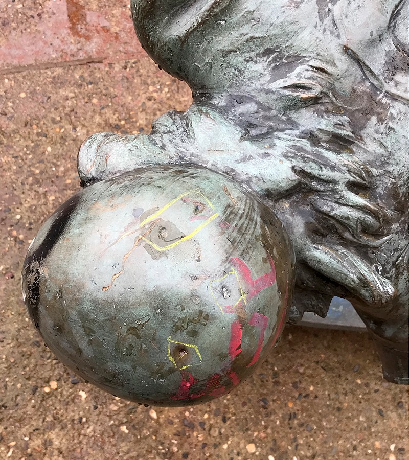 Místní patriot Pavel Frič, který se skrývá pod pseudonymem Vyšehradskej jezdec, byl právě ten, kdo sochu zachránil. Začal pátrat, kde socha skončila, našel jejího autora a díky finanční podpoře dalších lidí ji spolu s podkrkonošskou slévárnou dal dohromady. „Mám radost především z toho, že osud sochy vzbudil zájem obyčejných lidí a místních obyvatel. Na transparentní účet zaslalo peníze přes dvě stě dvacet přispěvatelů, kterým patří obrovský dík, že oprava skončila happy endem,“ říká Pavel pro server prahazdarma.cz. Pavel se záchranou sochy zabýval tři roky. „Trvalo dlouho, než se mi podařilo přesvědčit MČ Praha 2, že jde o dobrý nápad. Sama oprava sochy pak společně s vybíráním peněz zabrala necelý rok,“ upřesňuje. Díky lidem, které tenhle příběh zajímá, dal dohromady 250 tisíc korun.