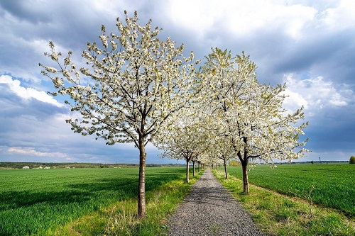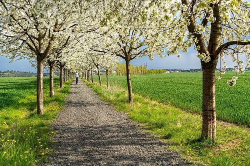 Mezi poli kdysi bývaly remízky, aleje a různá křoviska. V době socialismu se pole rozšířila a takové ostrůvky života zmizely. Teď se zase vrací. Jednu takovou právě rozkvetlou třešňovou alej najdete u obce Křenice, která se nachází hned za hranicemi města. Takhle úžasně ještě teď vypadá! Vydejte se tam než jaro definitivně odejde.