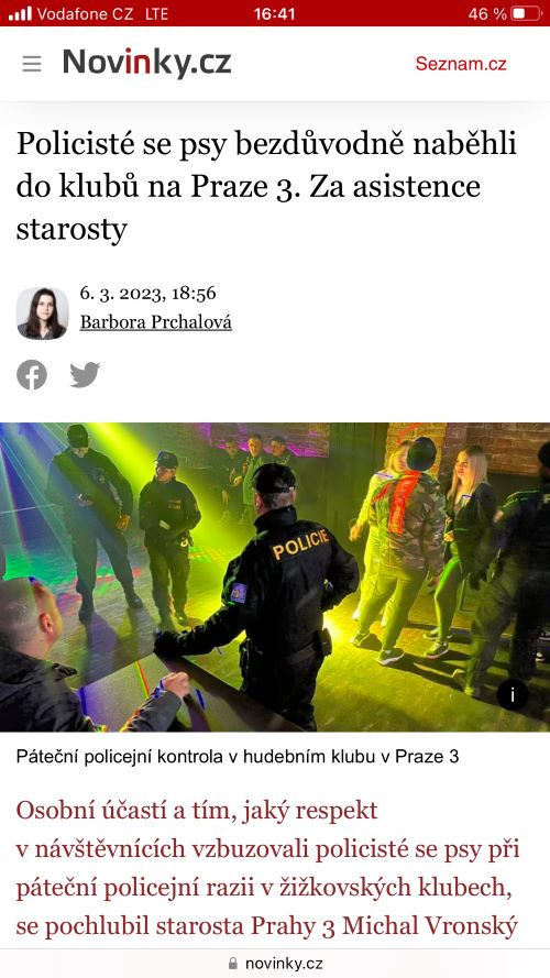 O této události také informoval server Novinky.cz, který použil velmi emotivně zabarvený titulek Policisté se psy bezdůvodně naběhli do klubů na Praze 3. Za asistence starosty. V článku pod tímto titulkem ale autorka textu Barbora Prchalová pak kromě reakcí na starostovu účast, píše o tom, že policie zadržela několik osob, které drželi drogy, další kvůli protiprávnímu jednání a také tři osoby, které byly v celostátním pátrání. Nikde není napsáno, že razie byla bezdůvodná, Asistence starosty v titulku zní, že byl Vronský v této akci aktivní.