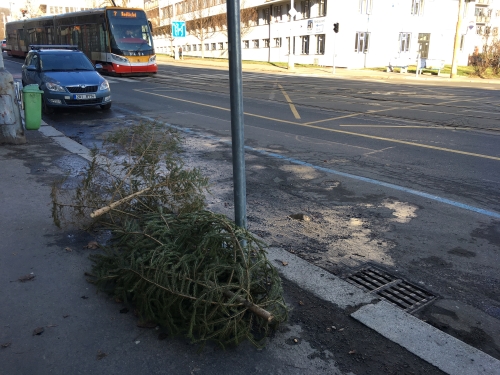 Znáte to, na Nový rok, kolem Tří králů se na ulicích začínají objevovat odložené vánoční stromky. Je to furt dokola. Nechávejte je volně u popelnic nebo kontejnerů na směsný odpad.