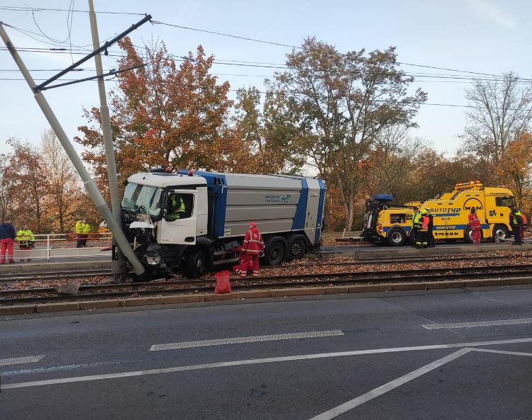 Dnes ráno zastavila provoz tramvají v Podolí nehoda. „Popelářské vozidlo vjelo do tramvajového kolejiště, tam se střetlo se sloupem a…
