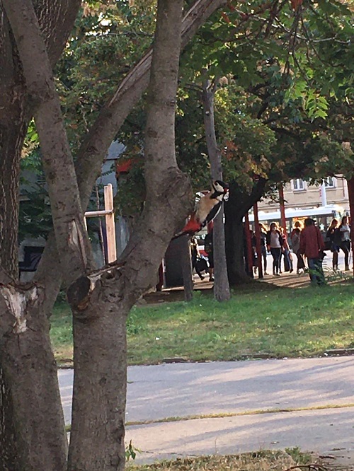 Na rušný Smíchov přiletěl strakapoud