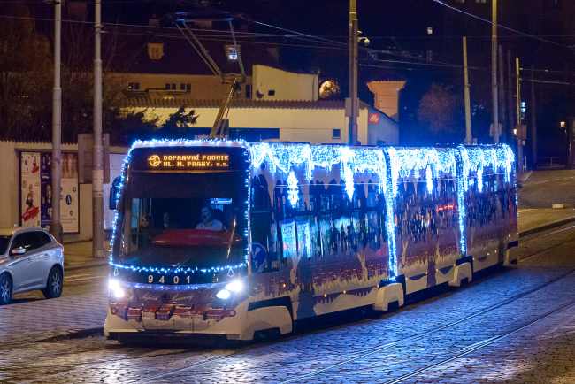 Vpodvečer do ulic poprvé vyrazila vánoční vozidla. Nechybí mezi nimi tramvaje Škoda 15T ForCity, T3, oblíbená Mazačka nebo retrobus Irisbus…
