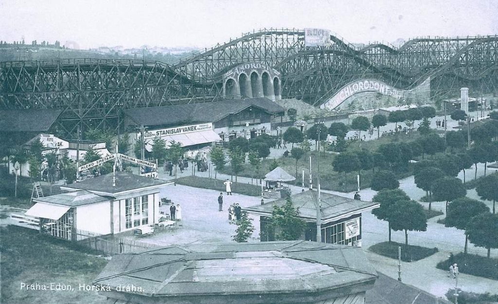 Lunapark s první horskou dráhou v Praze. Vystřídala ho galerka
