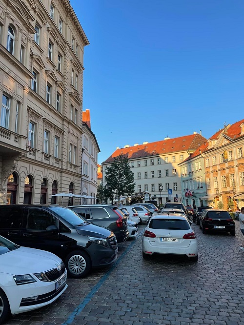 Dalším případem může být tristní situace na Betlémském náměstí. Tam už auta parkují už ve třech řadách. Na chodníku se roztahuje místní restaurace. Podle místních je to jednoznačná okupace veřejného prostranství.