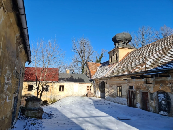 Unikátní usedlost byla založena ve 14. století, třicetiletá válka ji zanechala poničenou, vlastnil jí pokladník královského berního úřadu Karel Schönfeld nebo pasovský biskup Leopold Linhart Thun-Hohenstein, který ji nechal přestavět na klasicistní zámeček s rozsáhlým parkem.