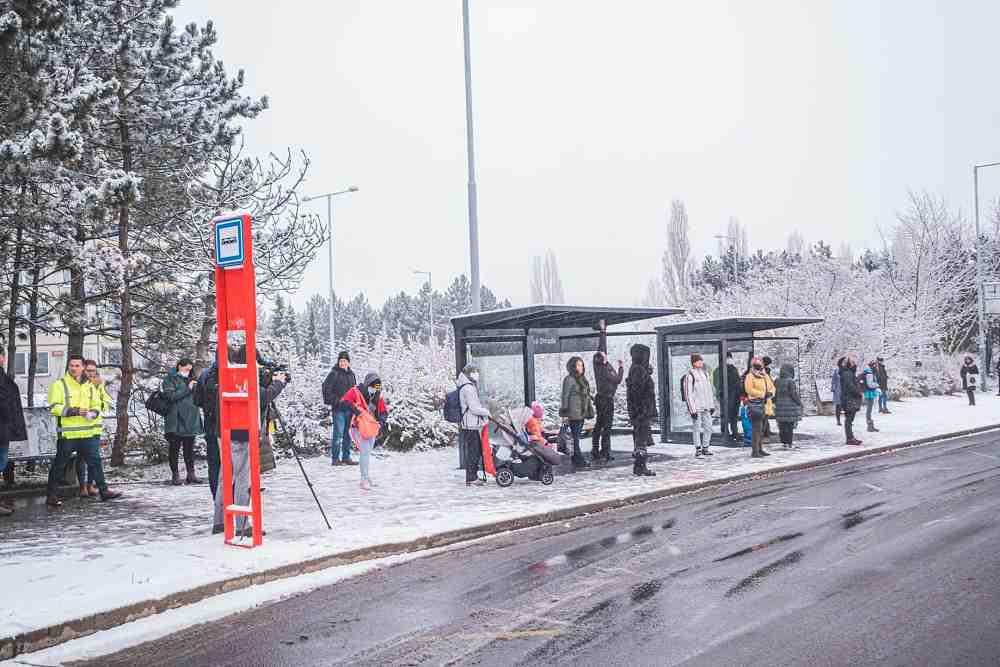 Dnes se svým projektem začala na Velké Ohradě, ale pilotní kousek už pár měsíců stojí na Palackého náměstí (na straně u sochy Palackého). Zajímavostí je, že tehdy “svou” zastávku “otevřela” na druhé straně na Palačáku i firma JCDecaux, která měla pod palcem reklamní prostor na zastávkách. Byl to takový souboj o pozornost lidí a výzva, která ze zastávek se jim líbí víc.