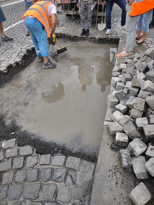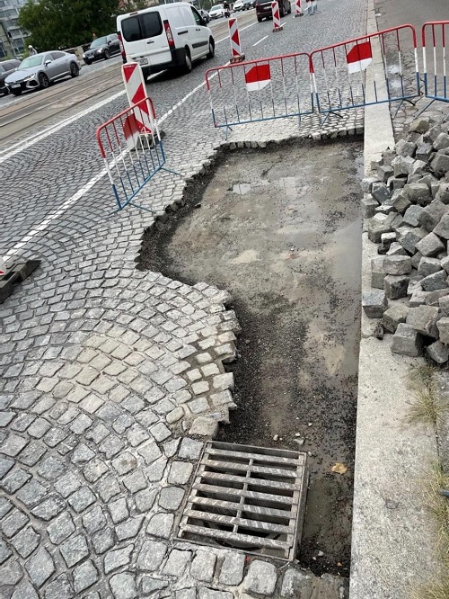 Podle náměstka pro dopravu Adama Scheinherra nedalo. „Pokud bychom to hned zadláždili, nový povrch by nevydržel ani 24 hodin. Museli jsme počkat, až přestane pršet, provrtat díru do uliční vpusti a dostat vodu pryč jinou cestou než odvodněním mostu,“ píše na svém FB Scheinherr.