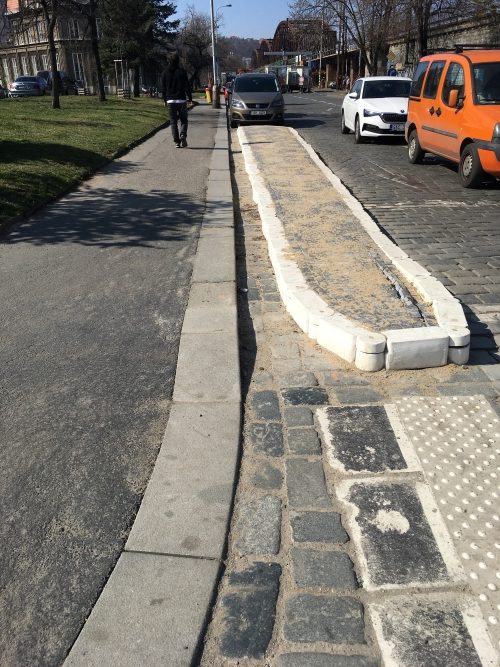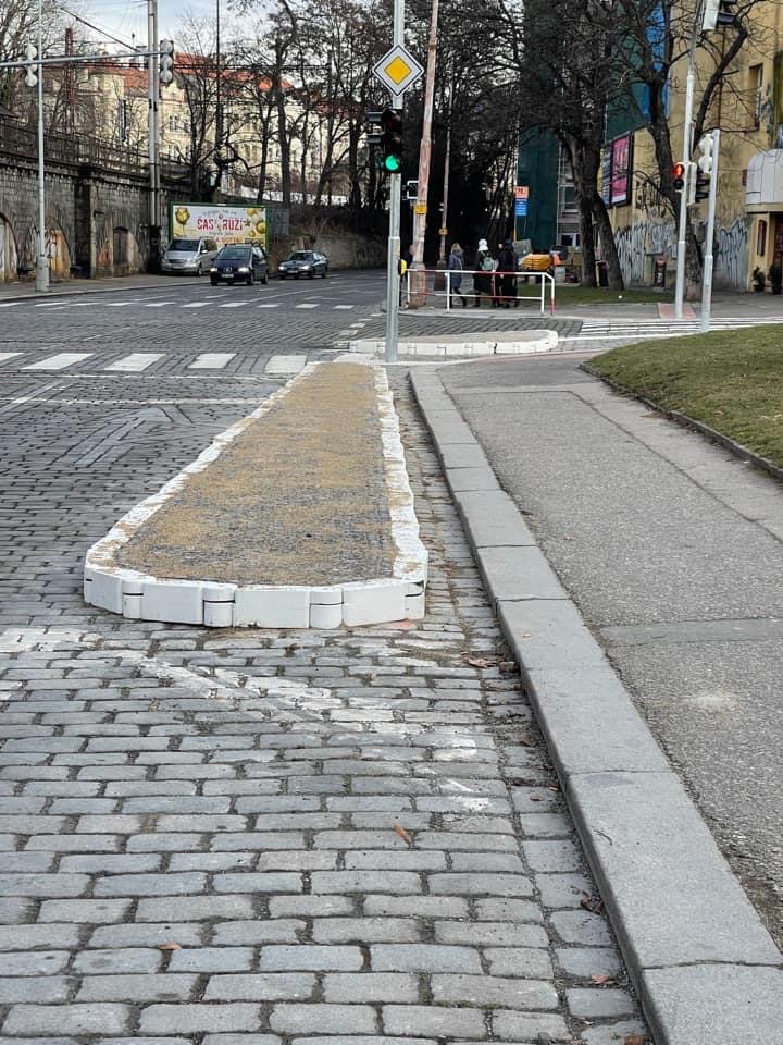 Vopičárna. Nesmysl. Tak někteří Pražané negativně hodnotí nové ostrůvky mezi ulicemi a chodníky. Lidé se podivují nad tím, že mezi nimi zůstávají mezírky, které nevypadají zrovna bezpečně. Připomeňme, že po nevzhledných žlutých betonových blocích, přibyl podobný ostrůvek na Smetanově nábřeží při pokusu o jeho zklidnění. Jednalo se o provizorium. A to samé je i tady na Výtoni a na Těšnově. Praha tak nemusí žádat památkáře ani stavební úřady o posvěcení. Provizorní skládající obrubníky může postavit v podstatě rychle a bez papírování.