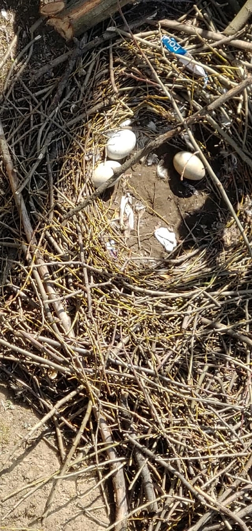 Čas od času jsme labutě kontrolovali. V jednu chvíli jsme zjistili, že dvě vejce při teplotách pod deset stupňů jsou na kraji hnízda a prší na ně. Třetí bylo pod samicí. Labuť v jednu chvíli opustila hnízdo úplně.